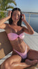Dream tanning bikini? We’ve got the perfect cut and design to elevate your next beach day. Bandeau style top with centre ruching flatters all bust sizes paired with the thin strap ruched bottoms. Achieve the perfect tanned with our fixed bottoms and minimal butt coverage. This set screams summer.