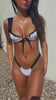 The VIRAL two tone has arrived - two tone wide ruching string set. Matte white contrasting with matte black (or reverse it) is giving HOT and a must have for the bikini wardrobe. The wide ruched string set gives you so much more comfort and support and flatters every body. With adjustable contrasting slide style straps at the back and matching adjustable high waisted bottoms - you’ve found your dream two tone set.